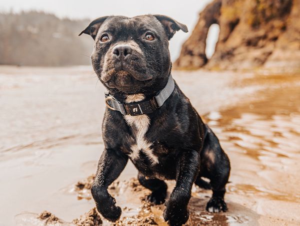Sedona – My sweet Staffordshire Bull Terrier with a heart of gold. Sedona has a special talent for helping dogs with impulse control and prey drive. She’s gentle, social, and always ready for a good game of frisbee when the work is done!